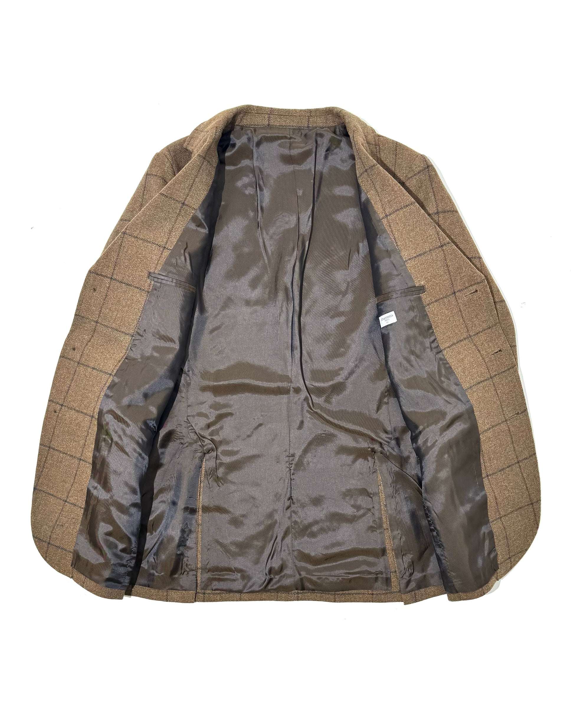 英国製の上質なツイード生地を使用し、秋冬の装いにぴったりの一着です。