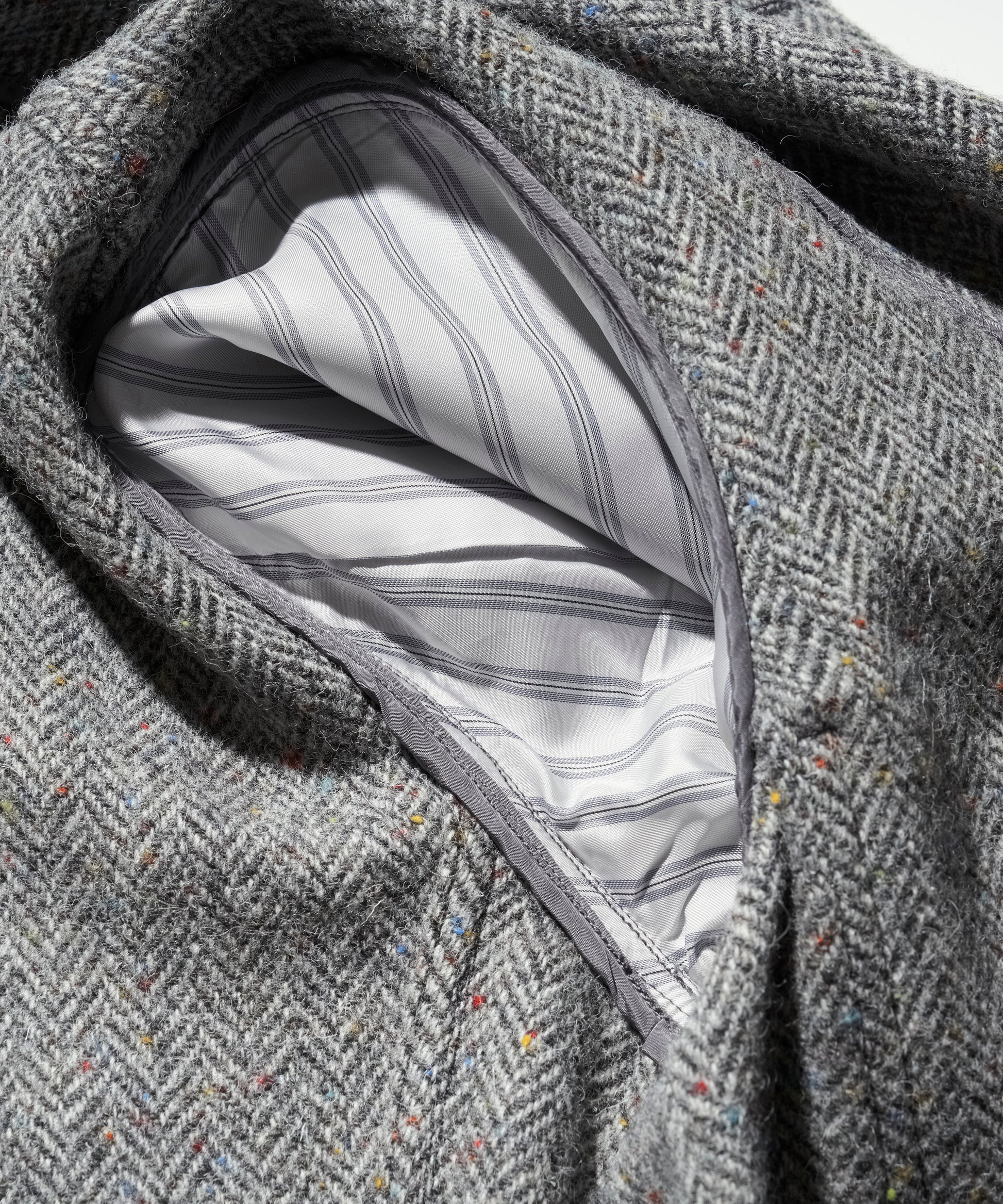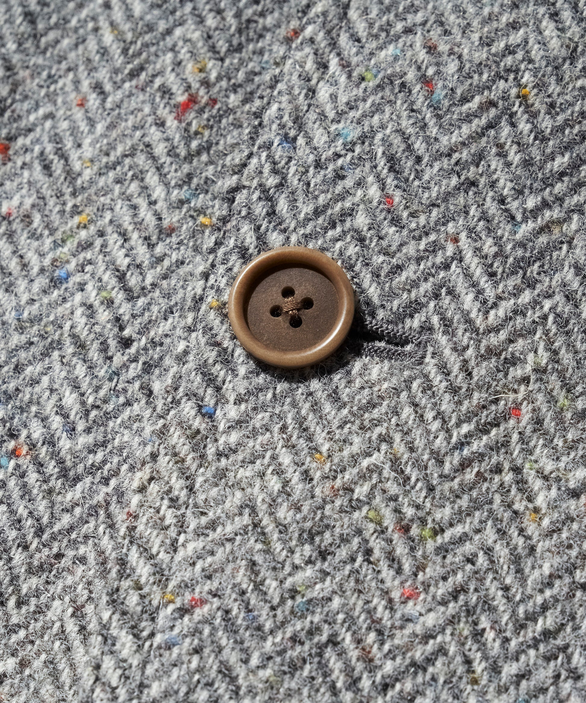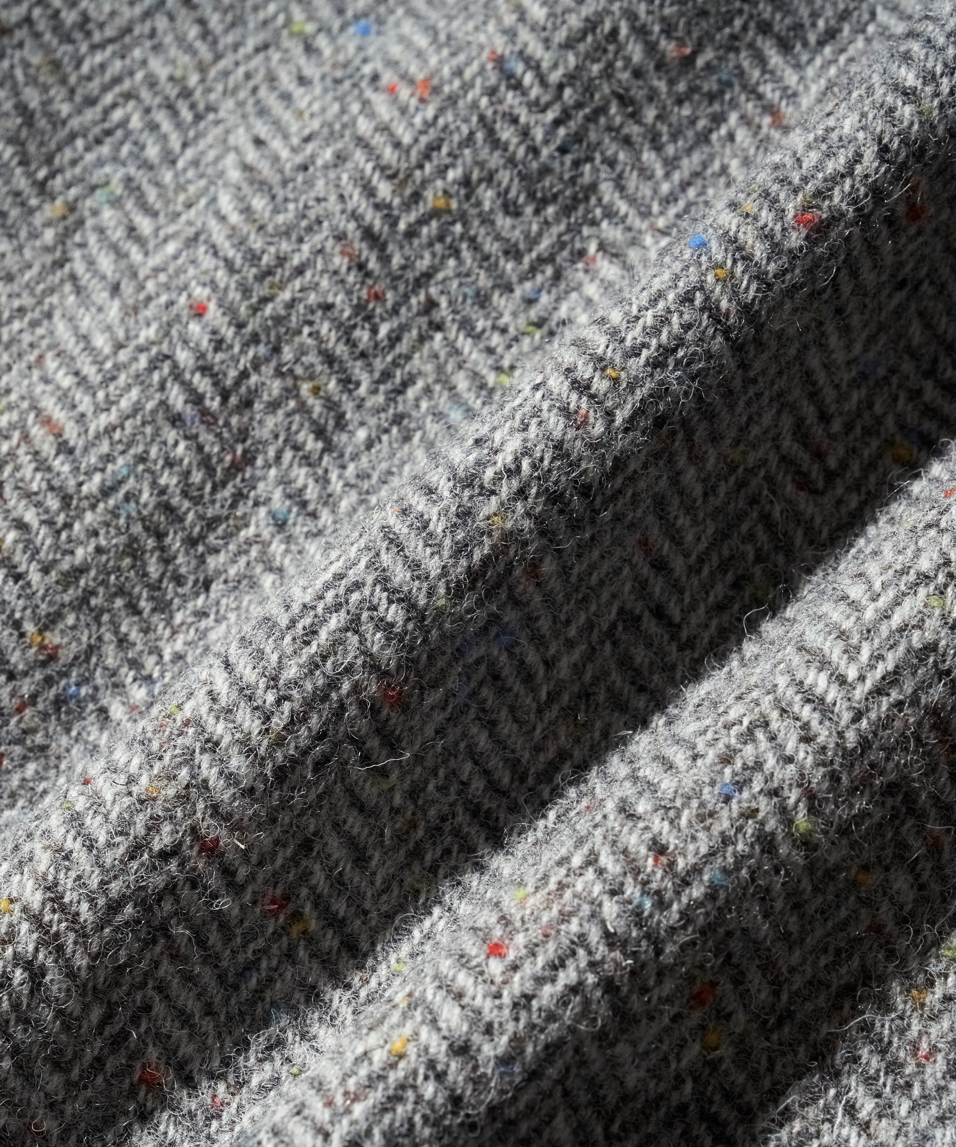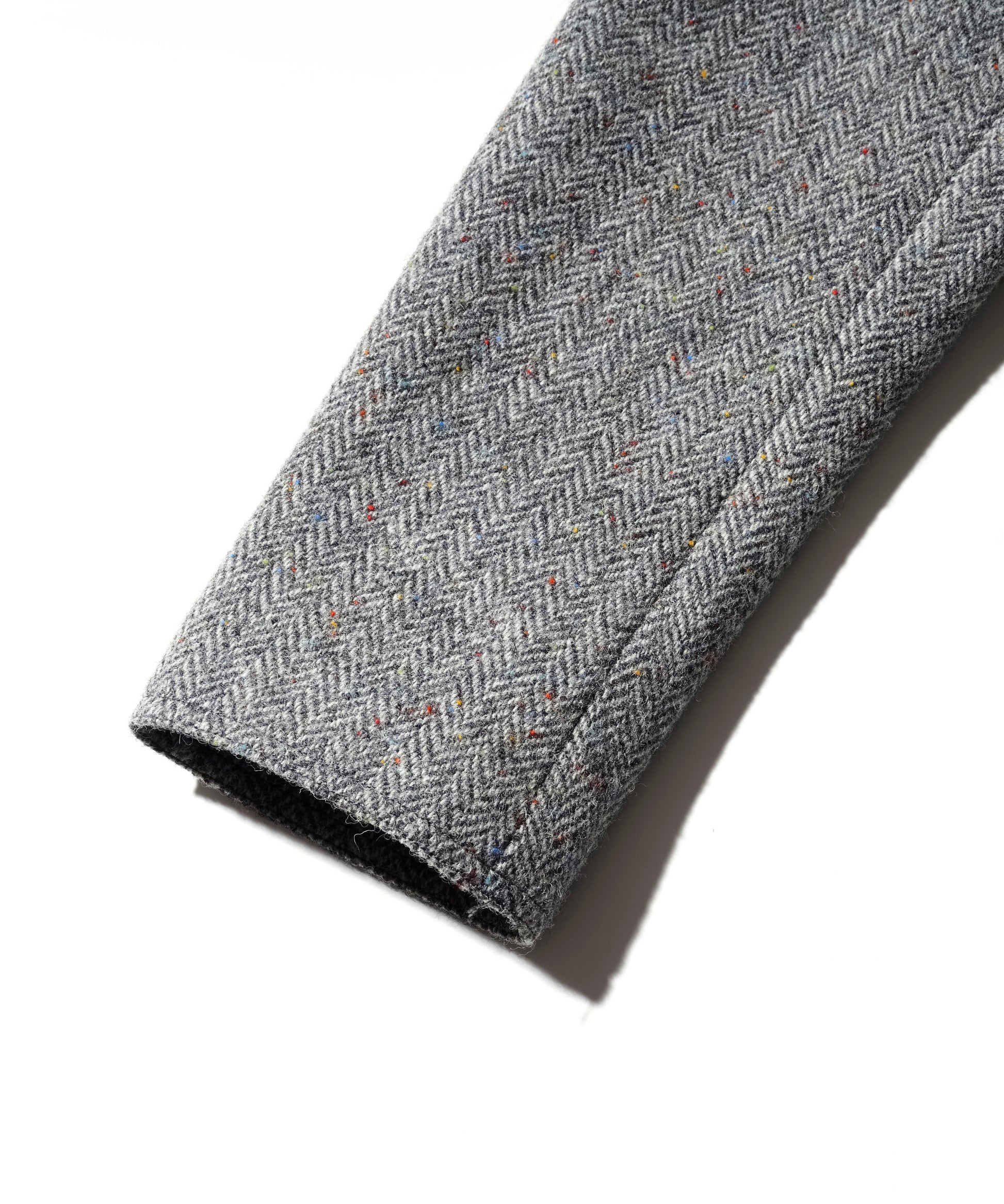 生地には、カラフルなネップが散りばめられたヘリンボーン織りのウール素材を使用。