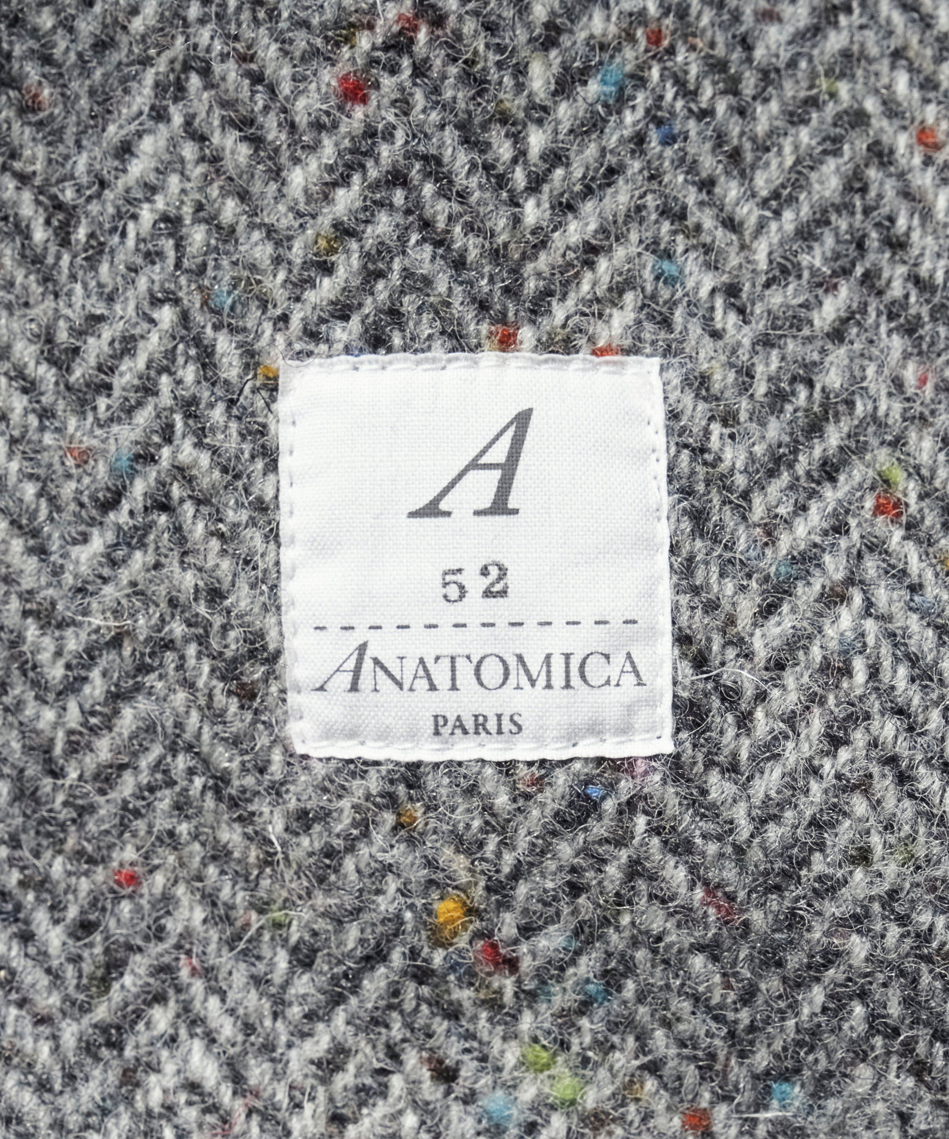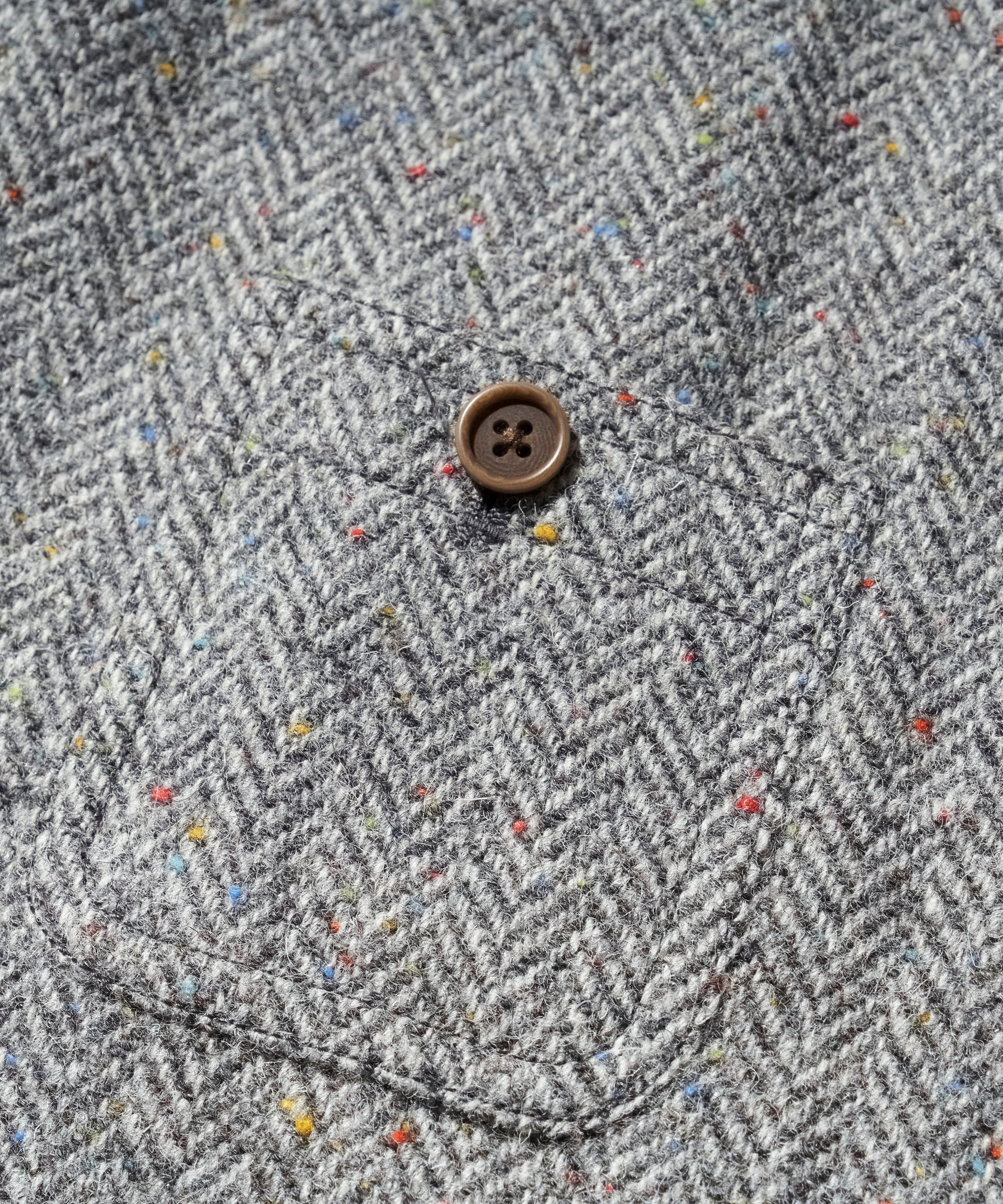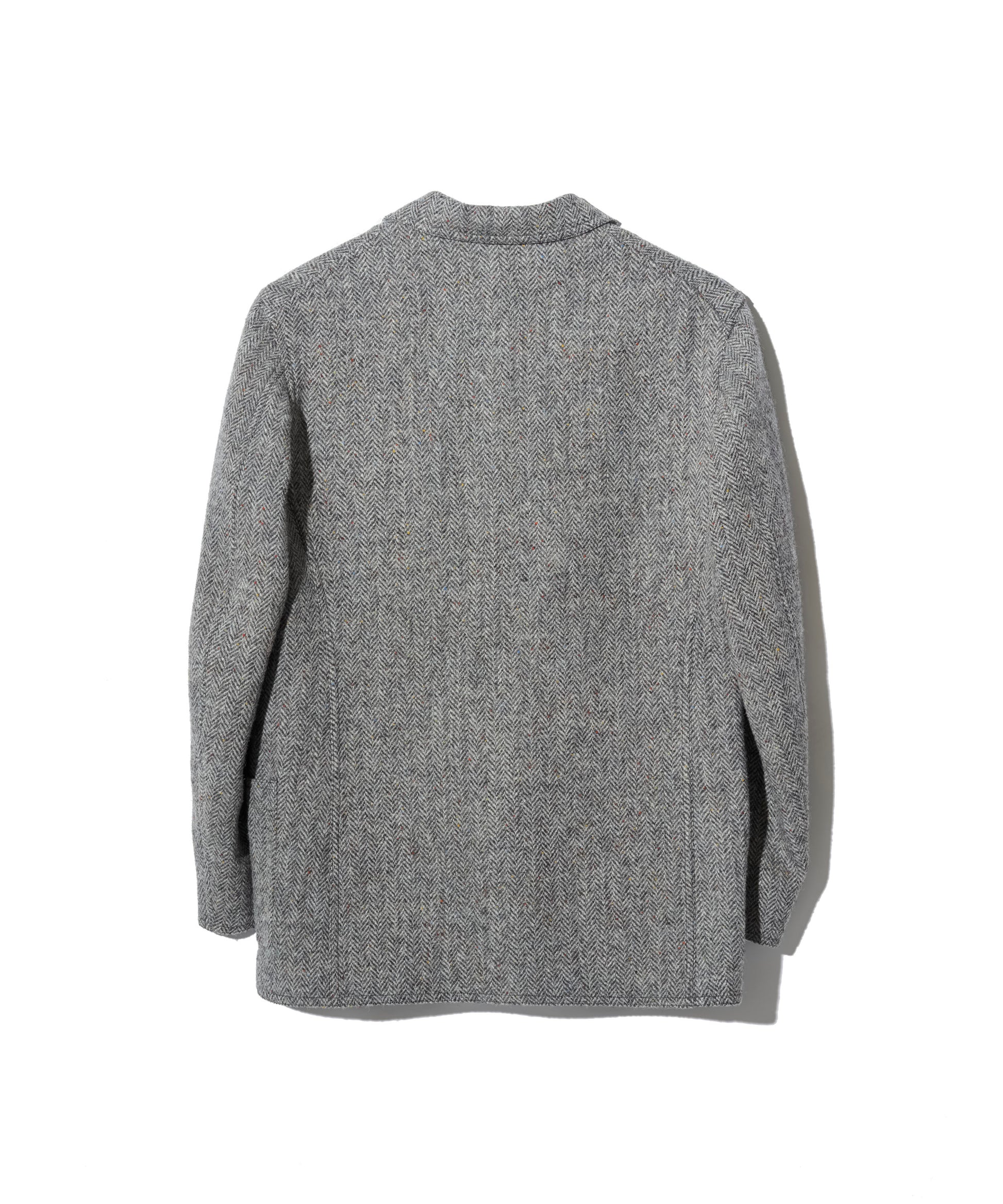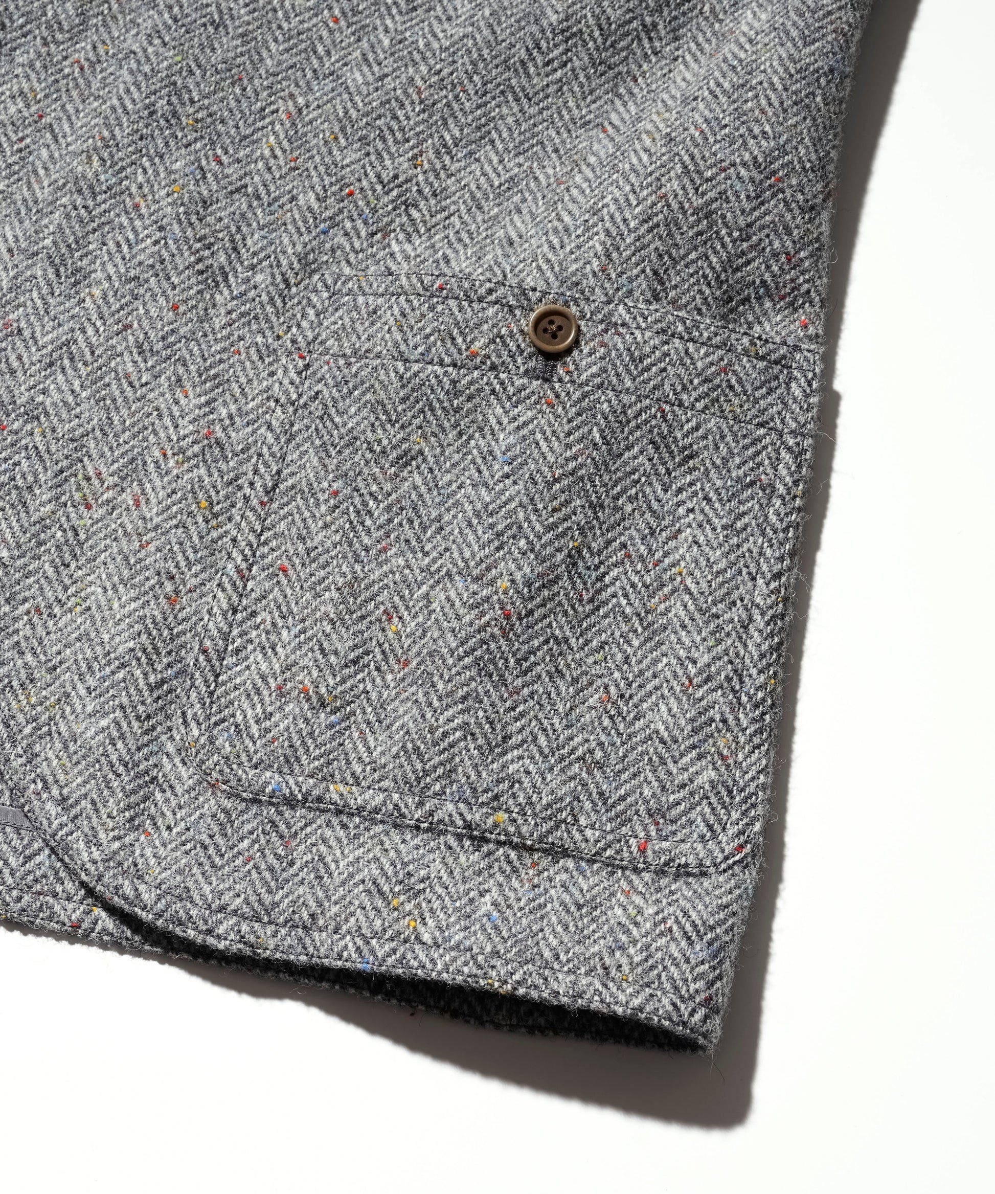 生地には、カラフルなネップが散りばめられたヘリンボーン織りのウール素材を使用。