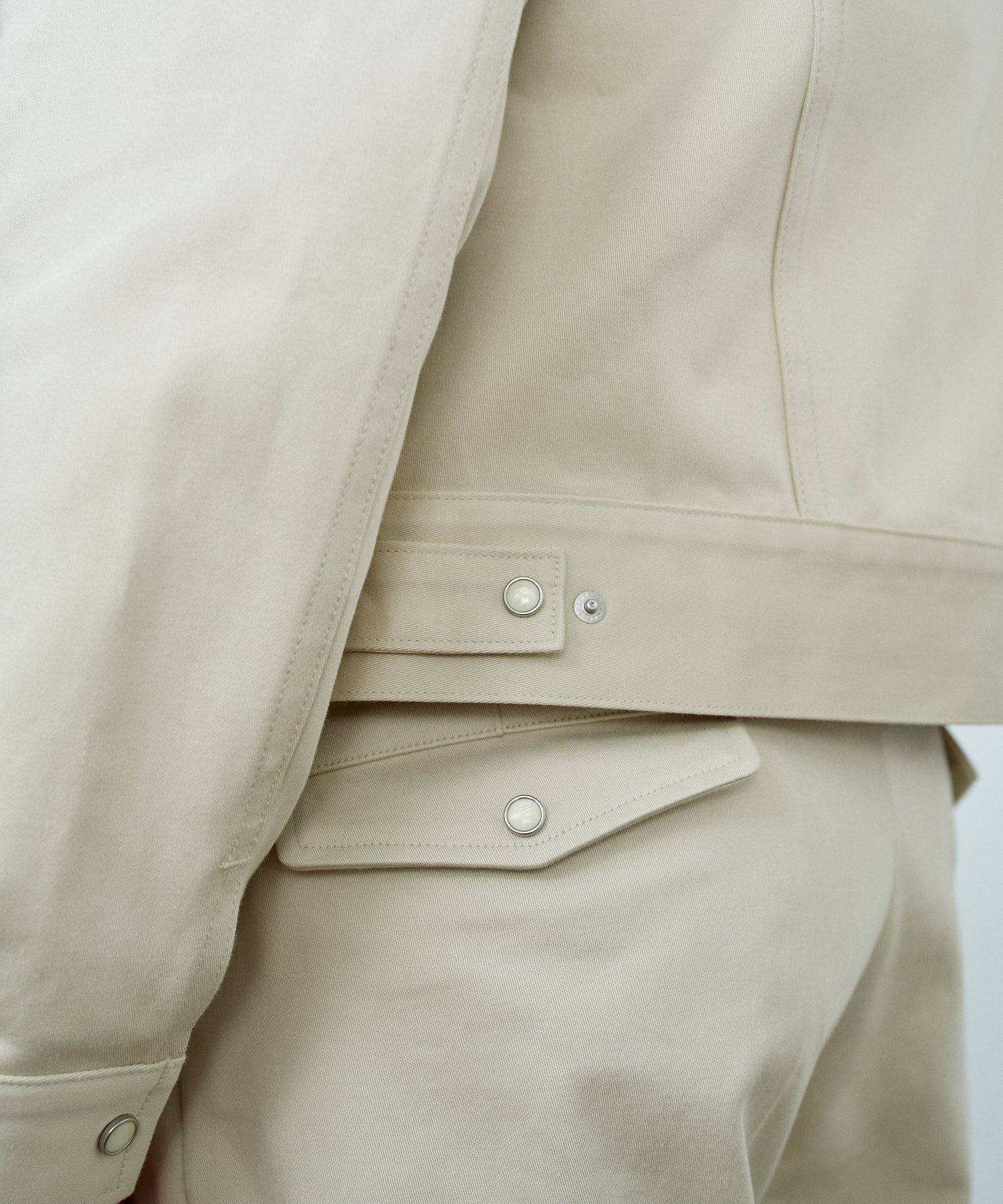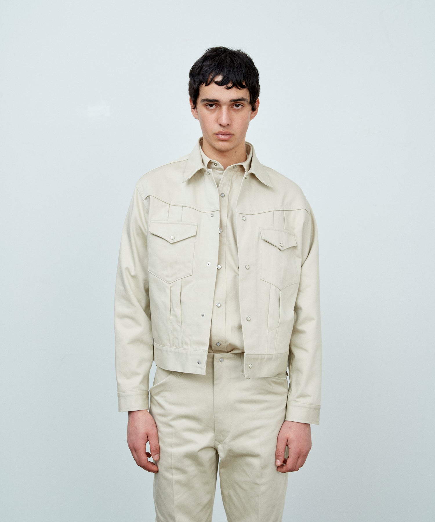 Questo oggetto è stato ricostruito da Anatomica, basata su una giacca occidentale in materiale di raso di cotone che esisteva negli anni '50. È dotato di un classico giogo occidentale, pulsanti a scatto sul davanti e una silhouette affilata senza sprechi.