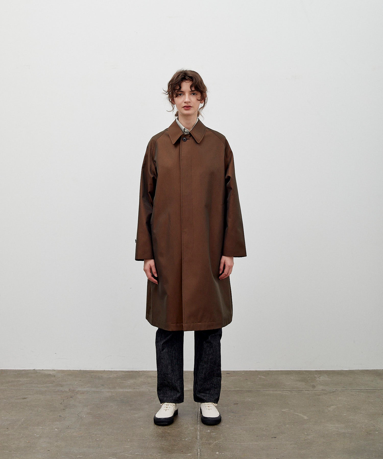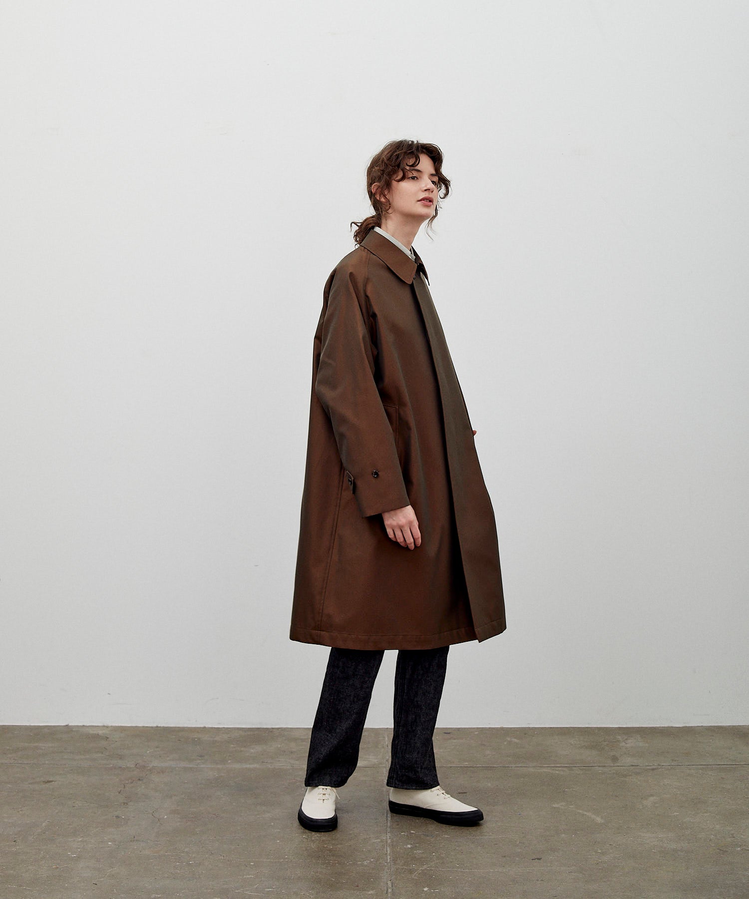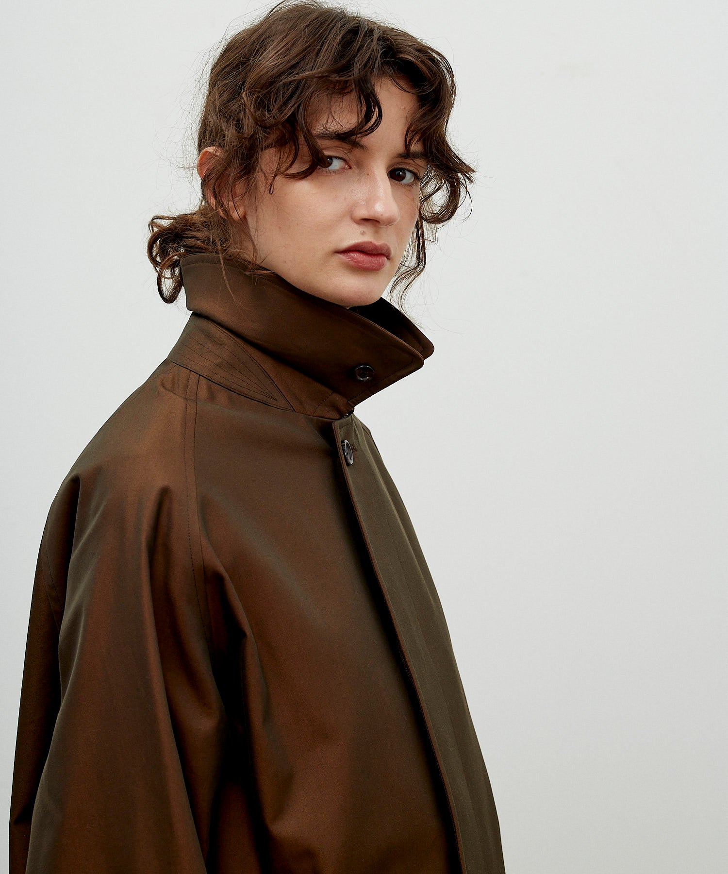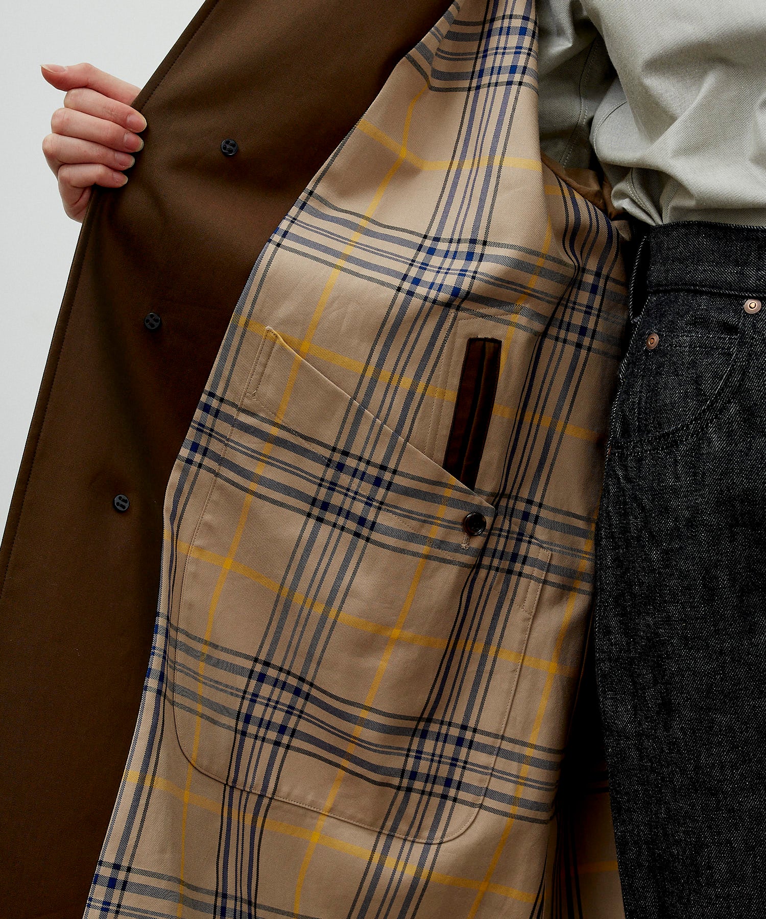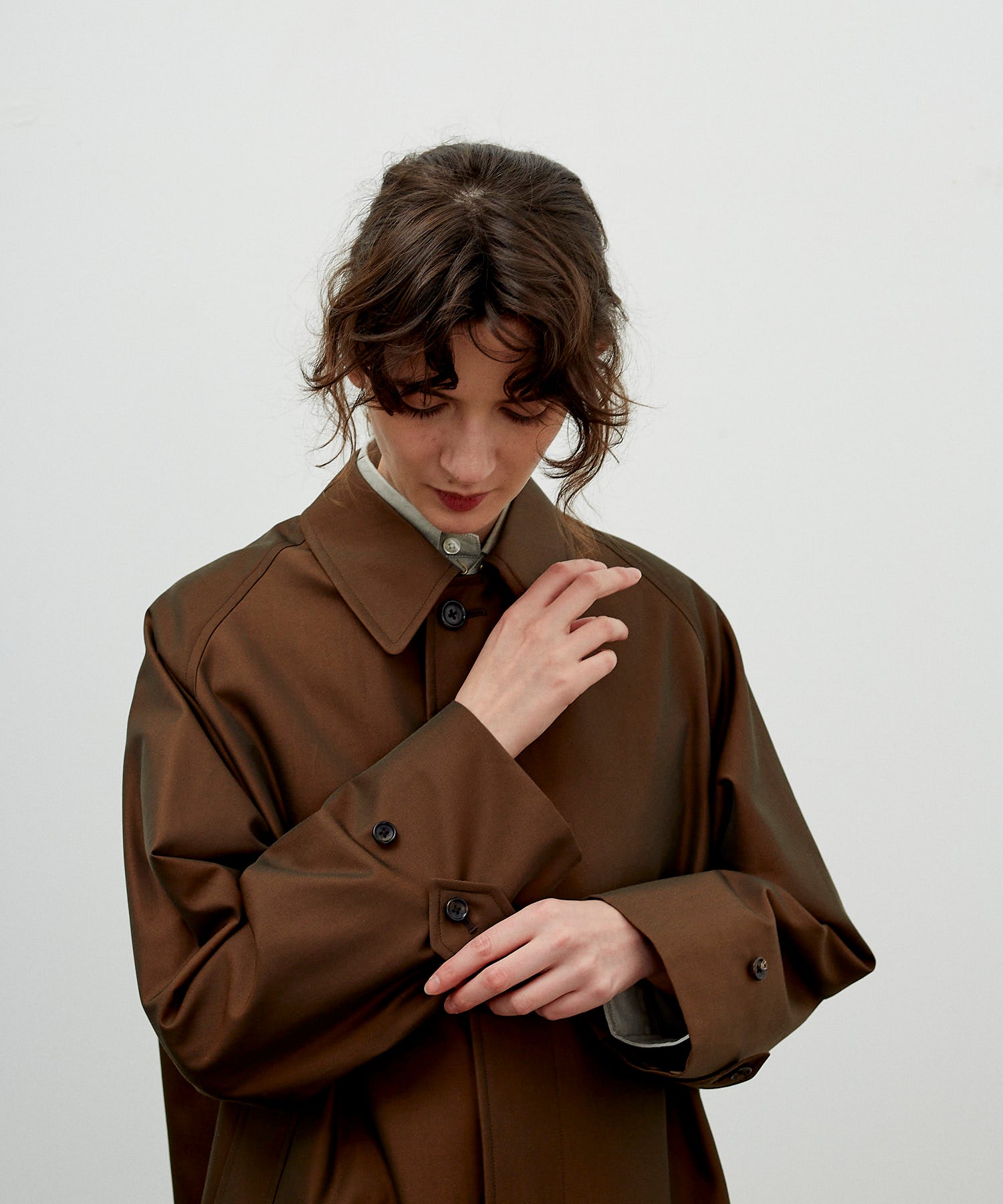 Cappotto di raglan singolo vanta un elevato repellenza per l'acqua usando la gabardina di cotone ad alta densità originale.