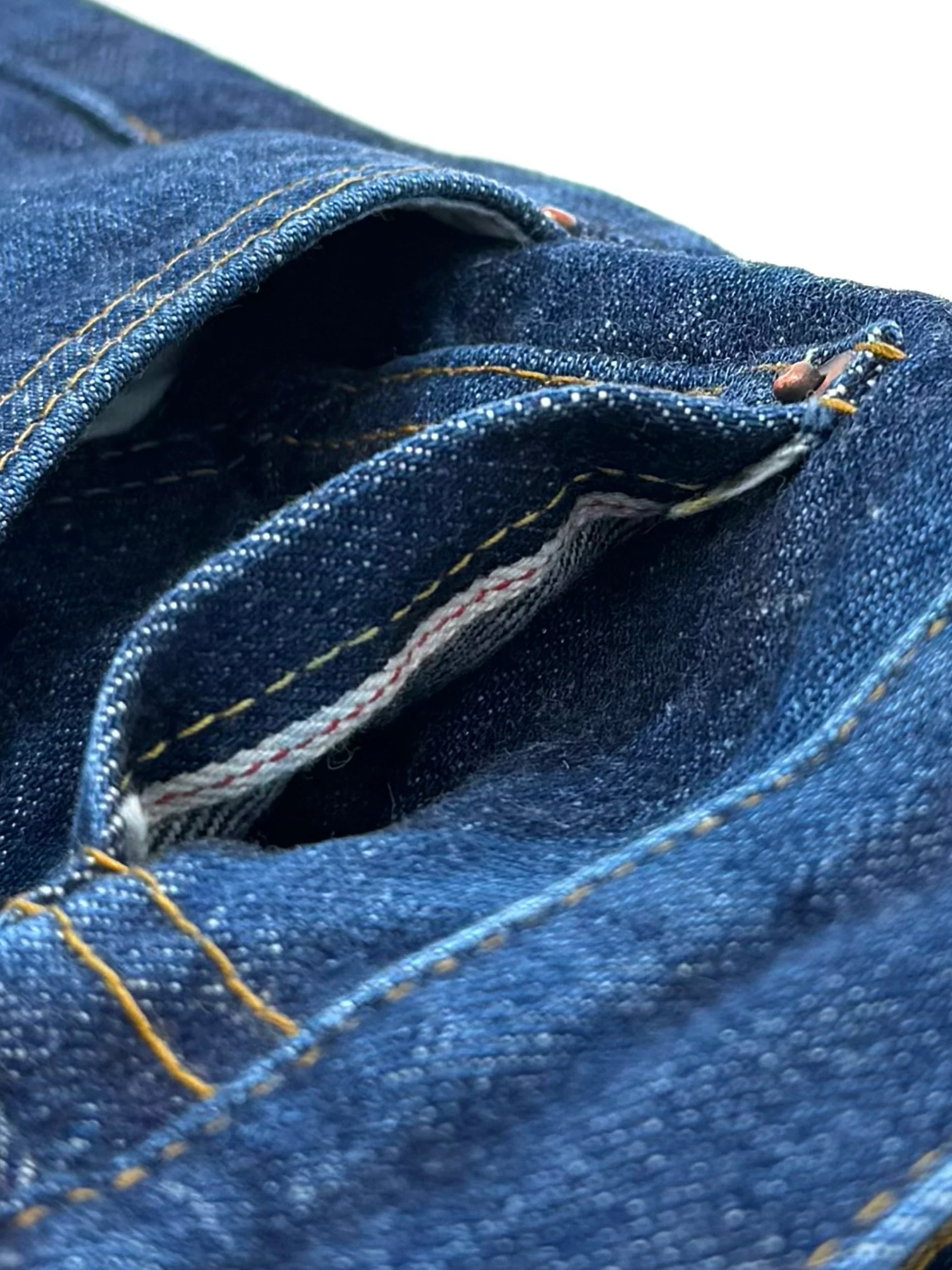 ユーズドウォッシュ加工のため、通常の「11618 DENIM」よりウエスト、わたりが小さくなっております。サイズチャートを参照くださいませ。
