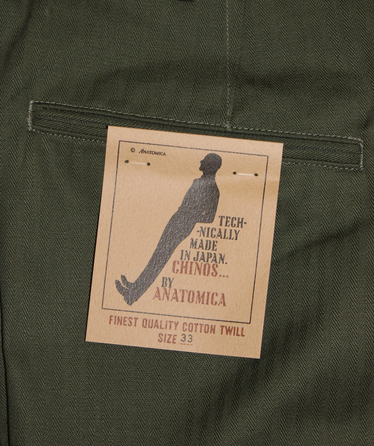細身でシルエットが綺麗に見えるものや、迫力のある太さで着る人の個性を出すものなど、チノパンには多種多様なタイプのものが存在すると思いますが、ANATOMICAのCHINOⅡはどちらでもなく至って普遍的。ですが、モチーフにしている年代や縫製、素材、コンマ数ミリのパターン修正を何度も繰り返すことで、どんなスタイルにも相性の良いパンツに仕上げています。