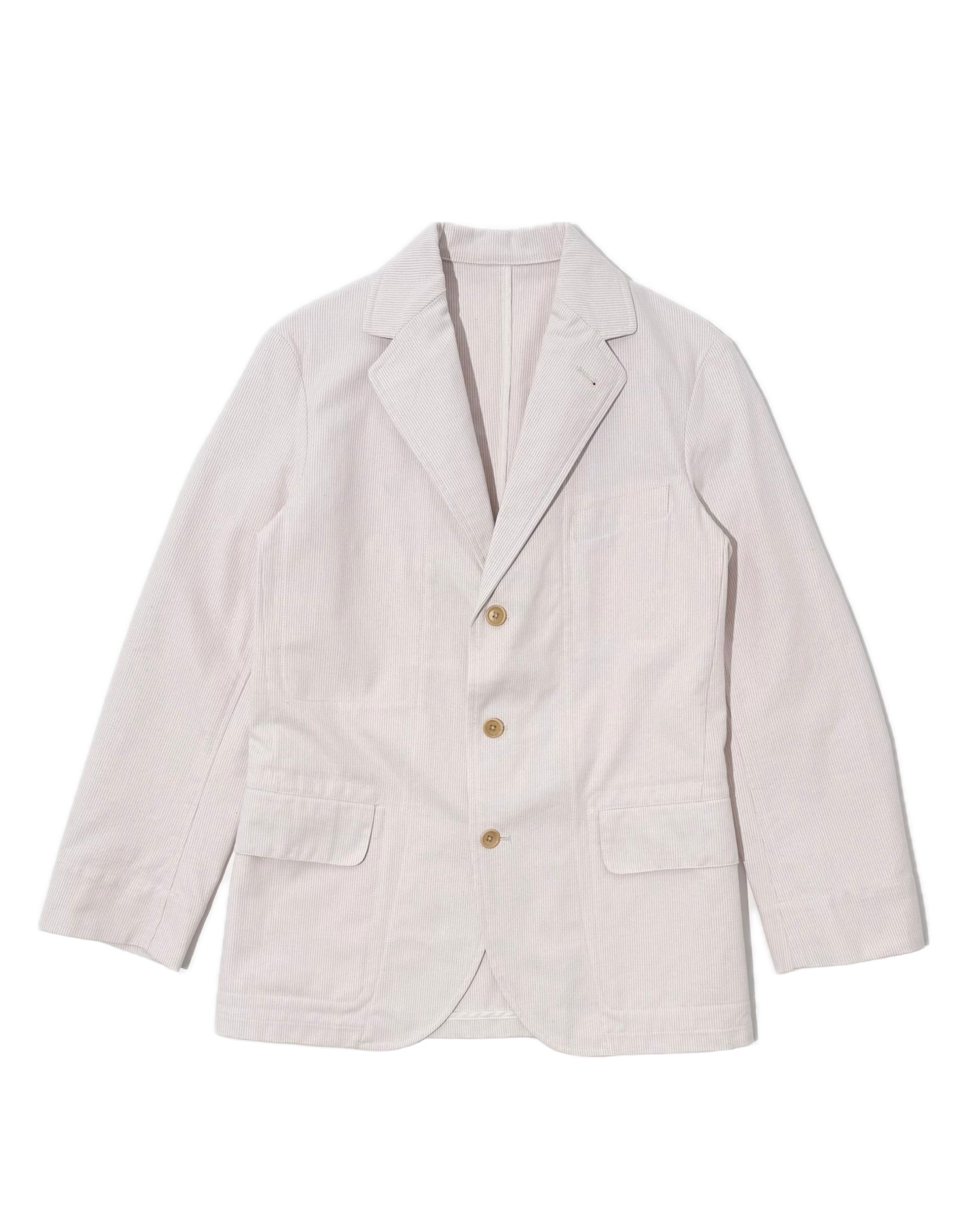 三つボタンで、着丈が長く、程よくウエストがシェイプされており、すっきりとした着こなしが叶います。