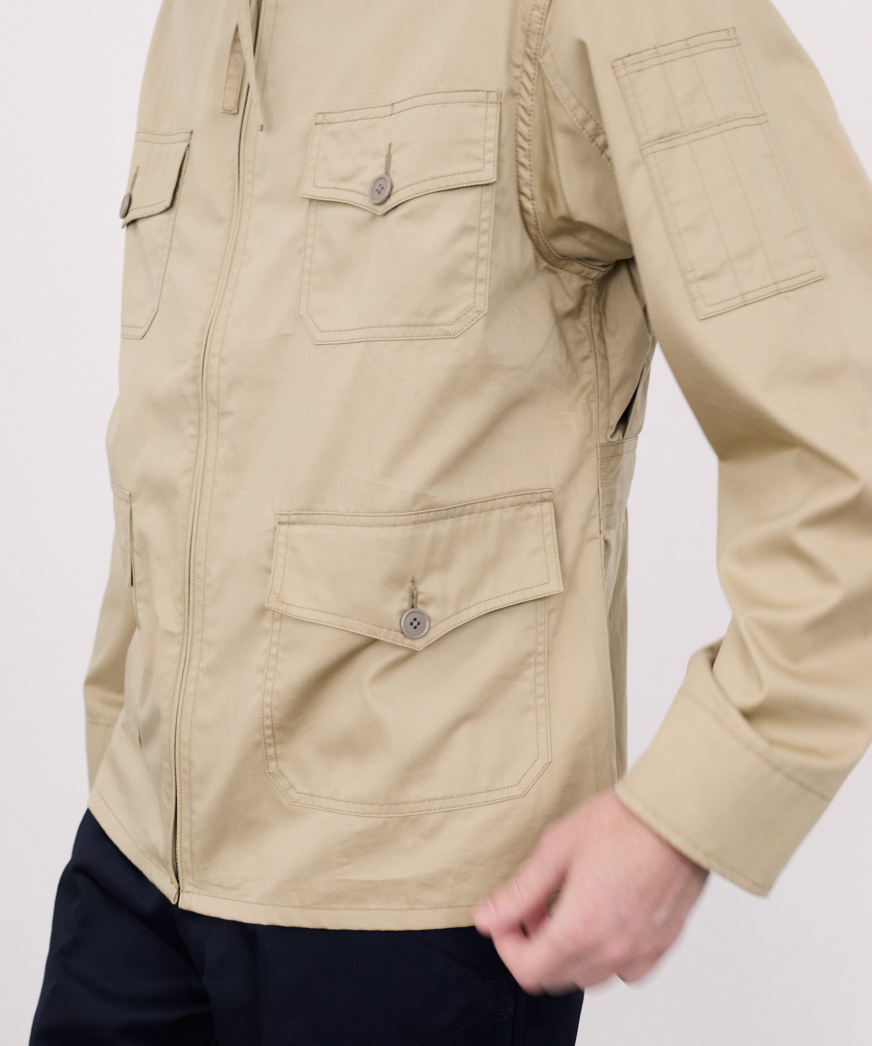 サラリとした質感で通気性の良いたARMY CLOTHと呼ばれるオリジナルコットンポプリン素材を使用し、機能的でありミリタリーらしいデザインの4つポケットが搭載。